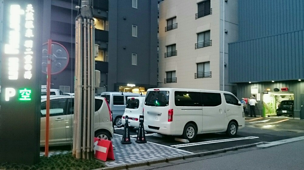 機械式立体駐車場の場合、チェックアウトの時間ぎりぎりだと大変込み合いますので、少し早めにチェックアウトをすまされた方がいいようです