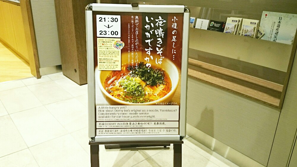 ・ドーミーイン名物【夜鳴きそば(ラーメン)】が無料でいただける