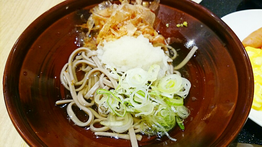 越前そばの代名詞である大根おろしが中心にのり、脇には白ネギと鰹節が盛られています。