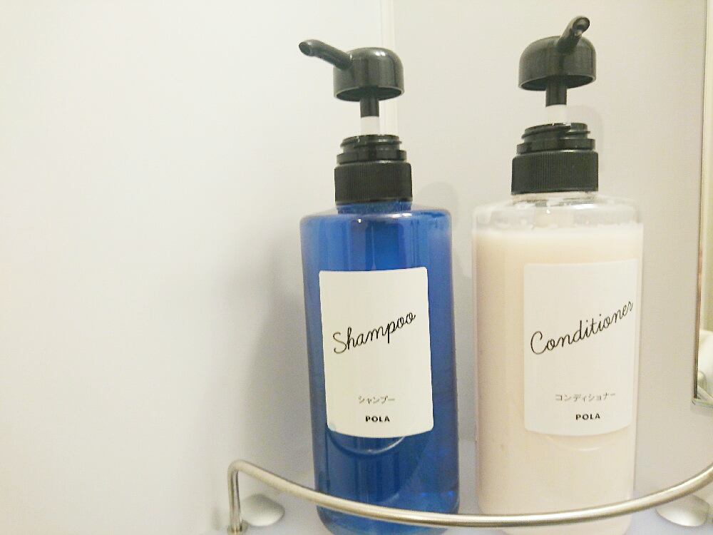 シャンプー、コンディショナー、ボディーソープはすべてPOLA。