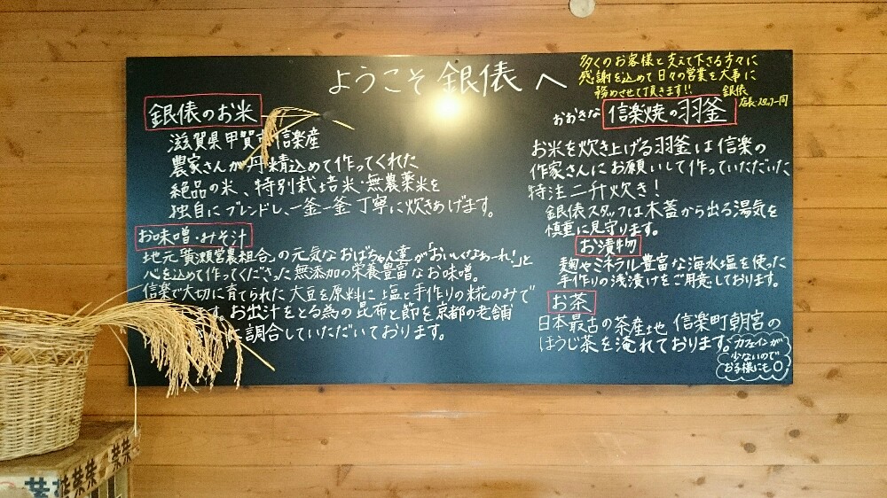 | 【住所】 滋賀県甲賀市牧1396 【電話番号】0748-83-8016 【定休日】無休 【営業時間】 月~金 AM11:00~PM15:00 土・日・祝 AM11:00~PM19:00 【駐車場】有り 【HP】銀俵 公式Hp |