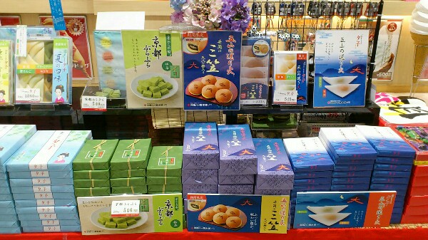 京都老舗【井筒八ッ橋本舗】のコーナーが設けられています。八ツ橋に三笠どれも美味しそう!