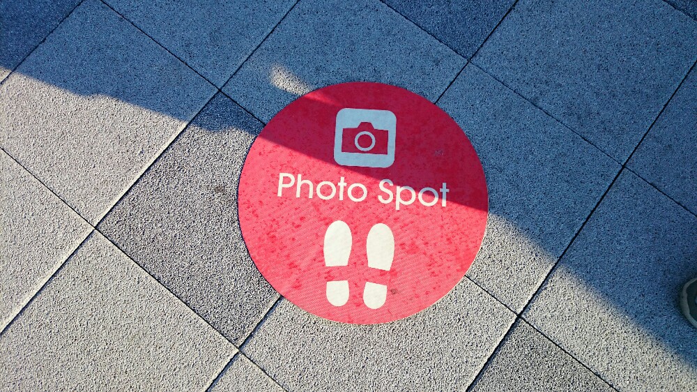 3つの写真すべては、オブジェ前で貼られているこの【photo spot】と書かれているところから撮影しています。