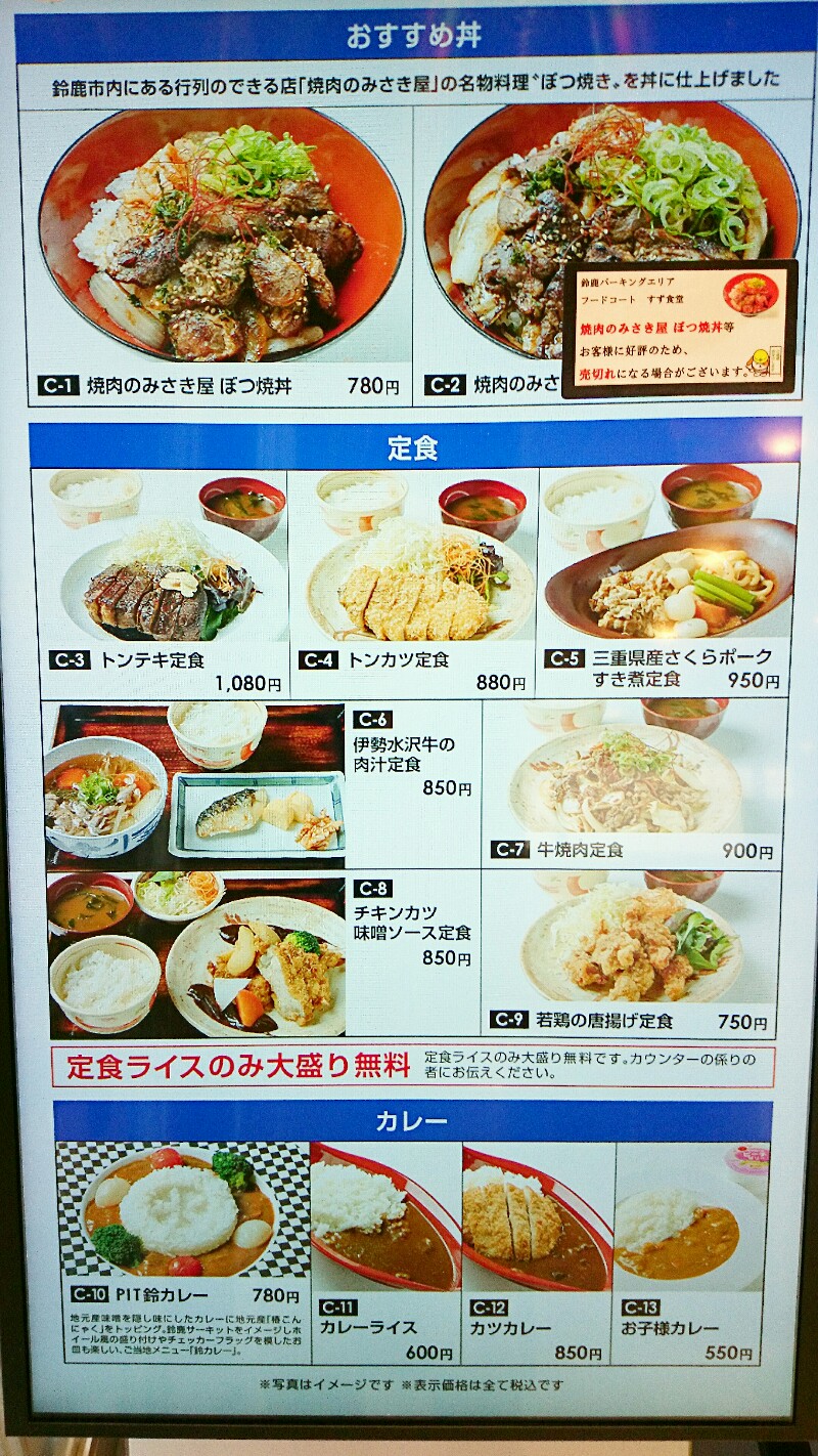 鈴鹿パーキングエリアのフードコート(グルメ)にはどんなお店がはいってる?