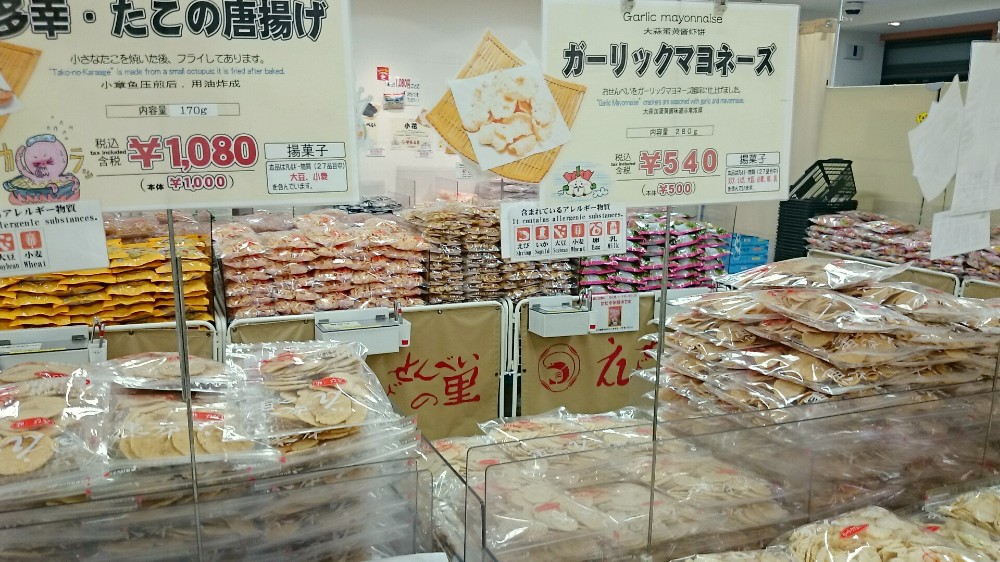 色んな種類のせんべいが沢山売られています