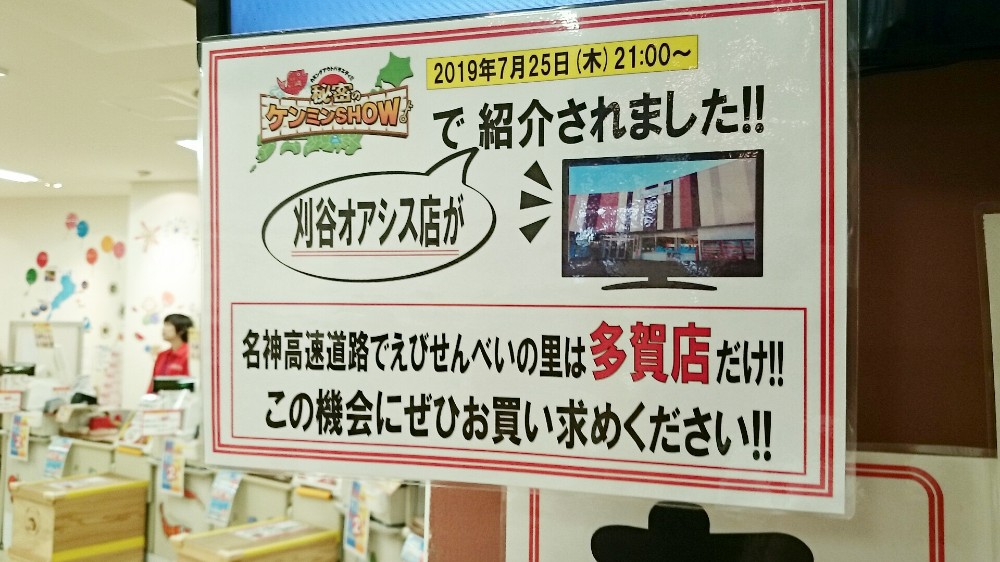 過去、えびせんべいの里は人気番組【秘密のけんみんSHOW】で紹介されたことがあるようで(刈谷オアシス店)、その事がPOPに書かれています