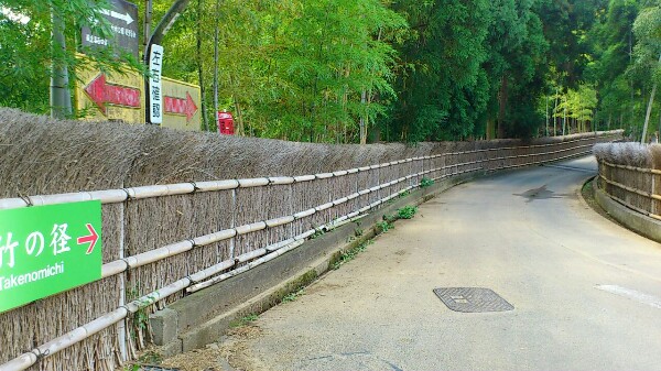 柵のところに【竹の径】の案内板