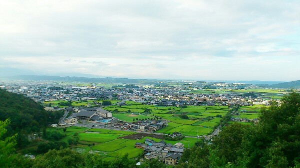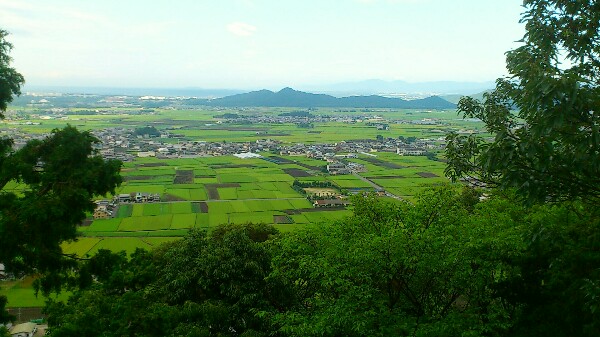 お礼をすませたのち、本殿の横にある展望台へ行くと、万葉集で詠まれている蒲生野の平野が限りなく広がっていました