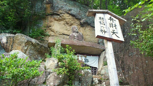 弁財天の石像の下に洞穴があり