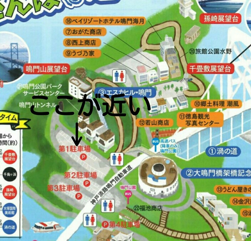 そのなかで、渦の道に1番近い駐車場が鳴門第1駐車場です