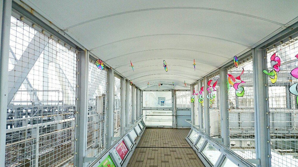 ①車を止め陸橋をのぼります